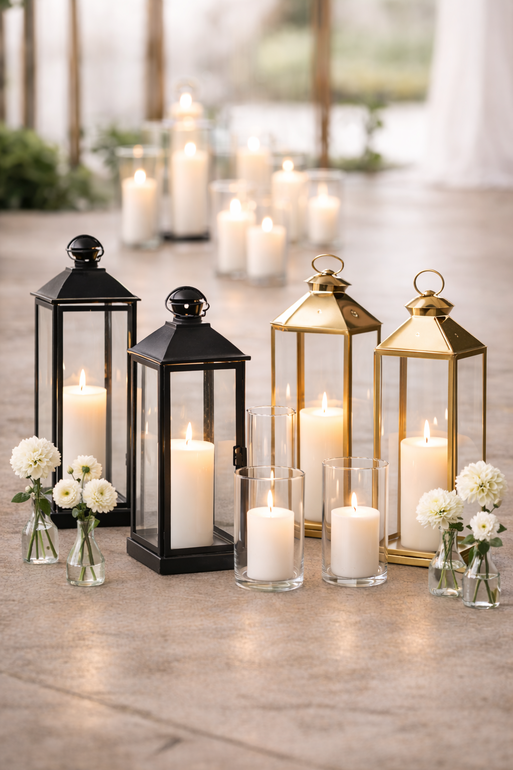 Aisle décor at base of arch (bud vases or flameless candles)