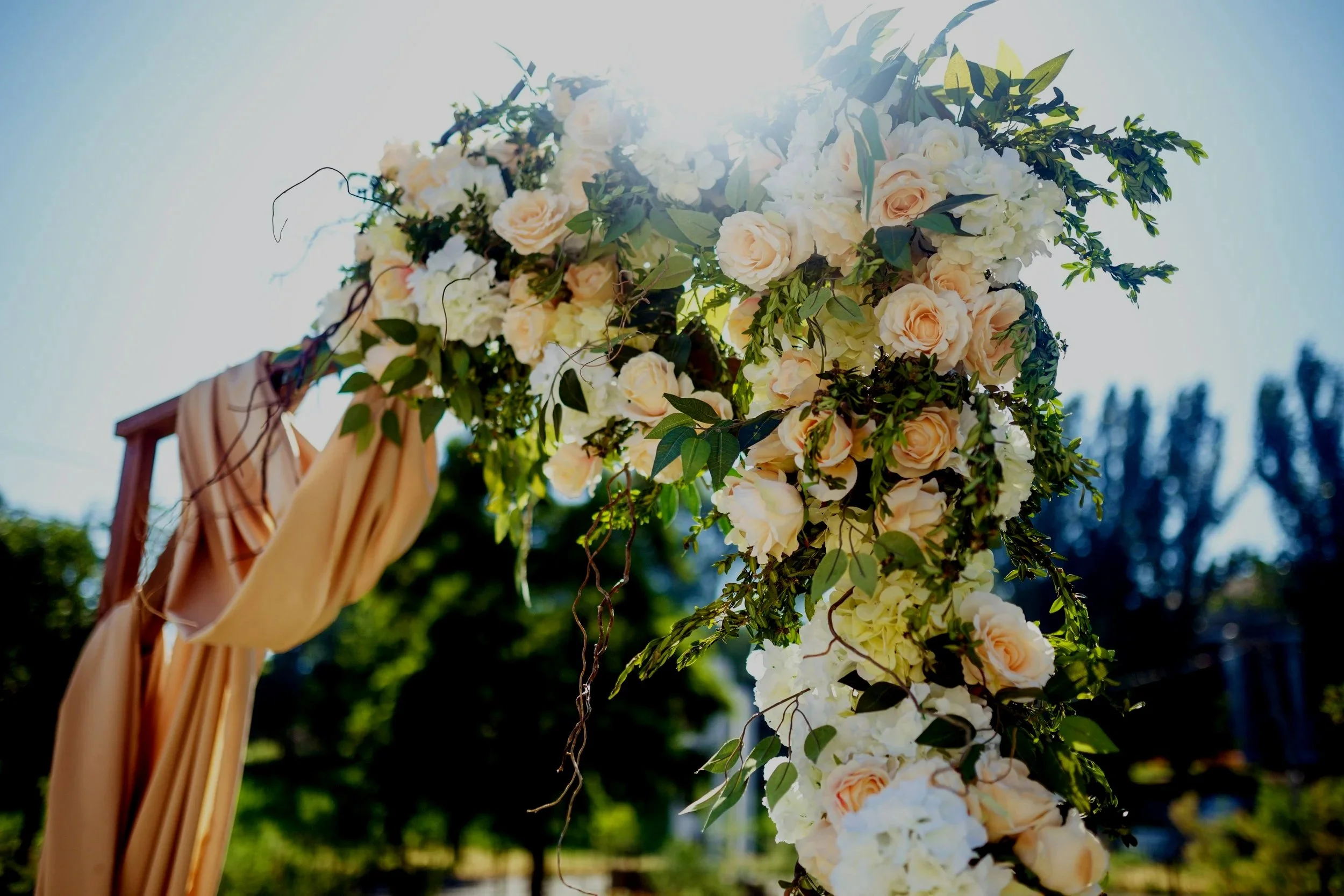 Additional florals at the base of the arch